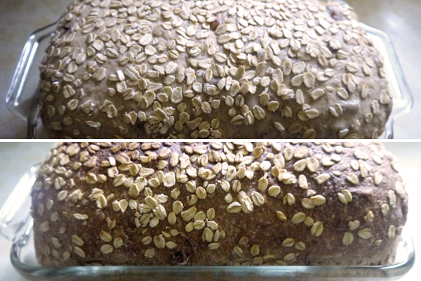 Method05 February 26, 2013 600 × 400 Whole Wheat Sandwich Loaf with Oats and Pecans Proofing and baking the loaf.