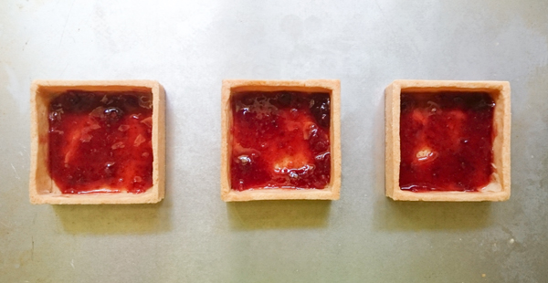 A Layer of Preserves June 30, 2014 600 × 310 Fresh Berry Tart with Almond Cream and Fruit Preserves Place strawberry preserves on the bottoms of each tart.
