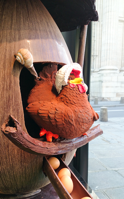 Chocolate Hen Sculpture May 13, 2014 400 × 639 Paris Adventure 2: The Pastry Tour This hen chocolate sculpture was on display when we visited, it seemed to be a theme of spring.