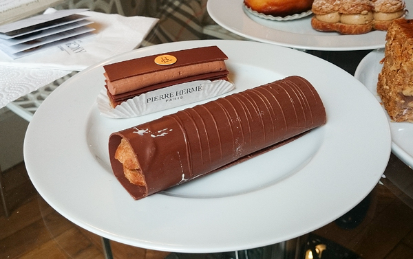 Chocolate entremet by Pierre Herme and an eclair encased in chocolate by La Patisserie des Reves. The chocolate cake was quite delicious, had good texture and a creamy chocolate cream. I personally found the eclair a bit too sweet, probably because of the chocolate shell.